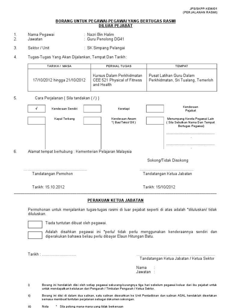 Borang Keluar Perjalanan Rasmi Claim Pdf